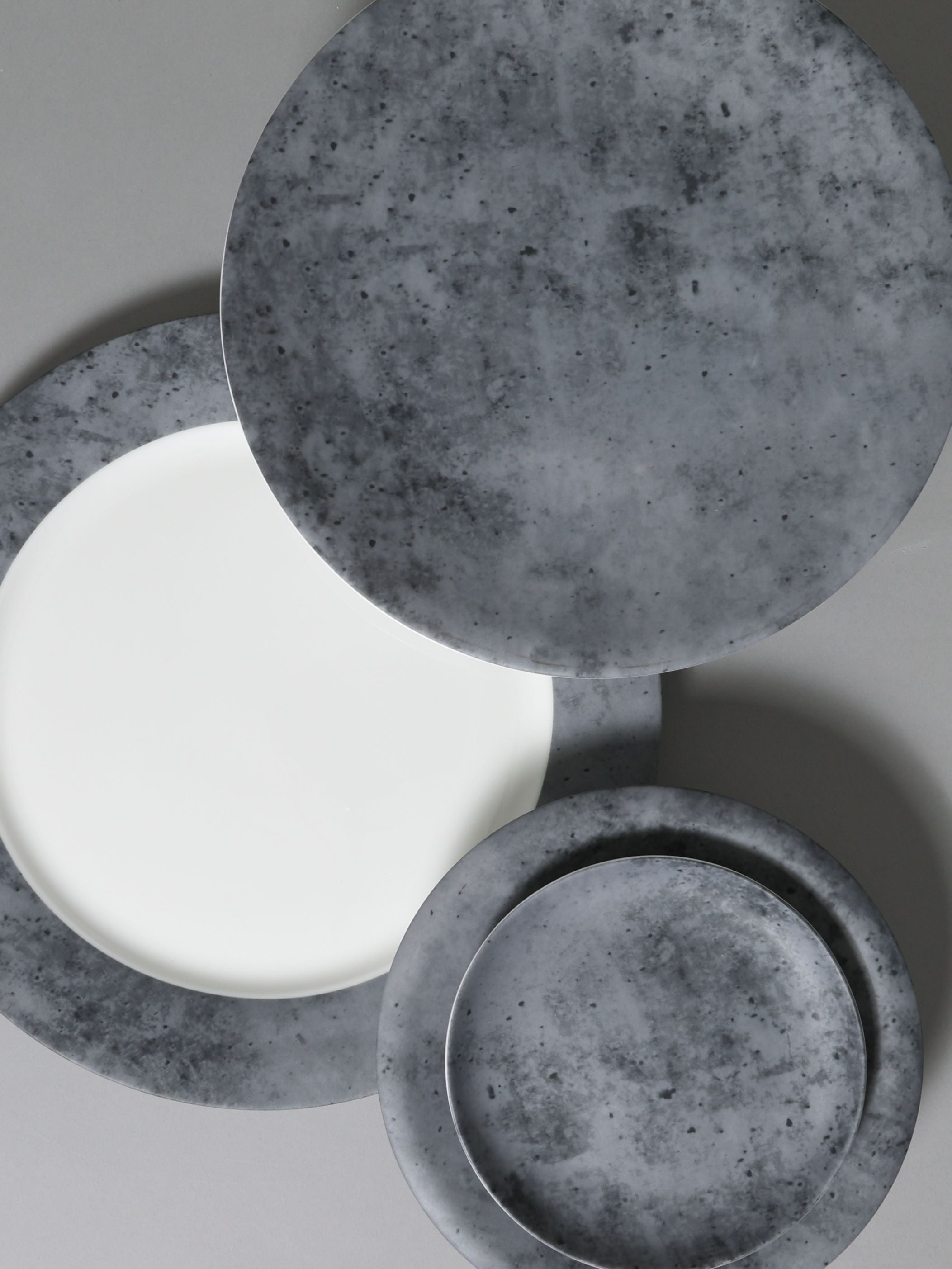 The Cement Matte collection brings a bold, contemporary touch to the table with its moody gray tones and raw, stone-like texture. The coupe plates and charger showcase a smooth matte finish, while the organic patterning evokes the depth and character of natural cement. Perfect for industrial-chic or minimalist settings, this collection adds a dramatic yet refined backdrop for any meal.