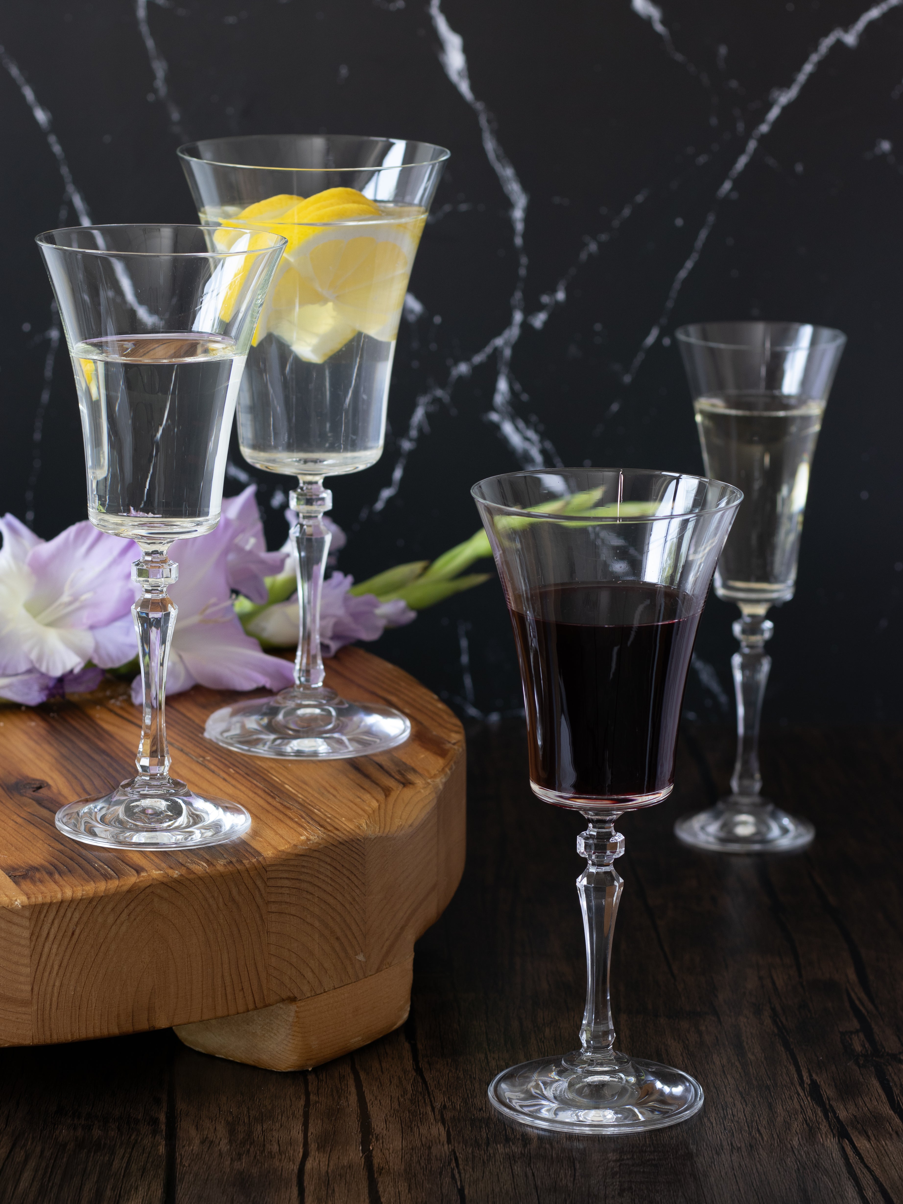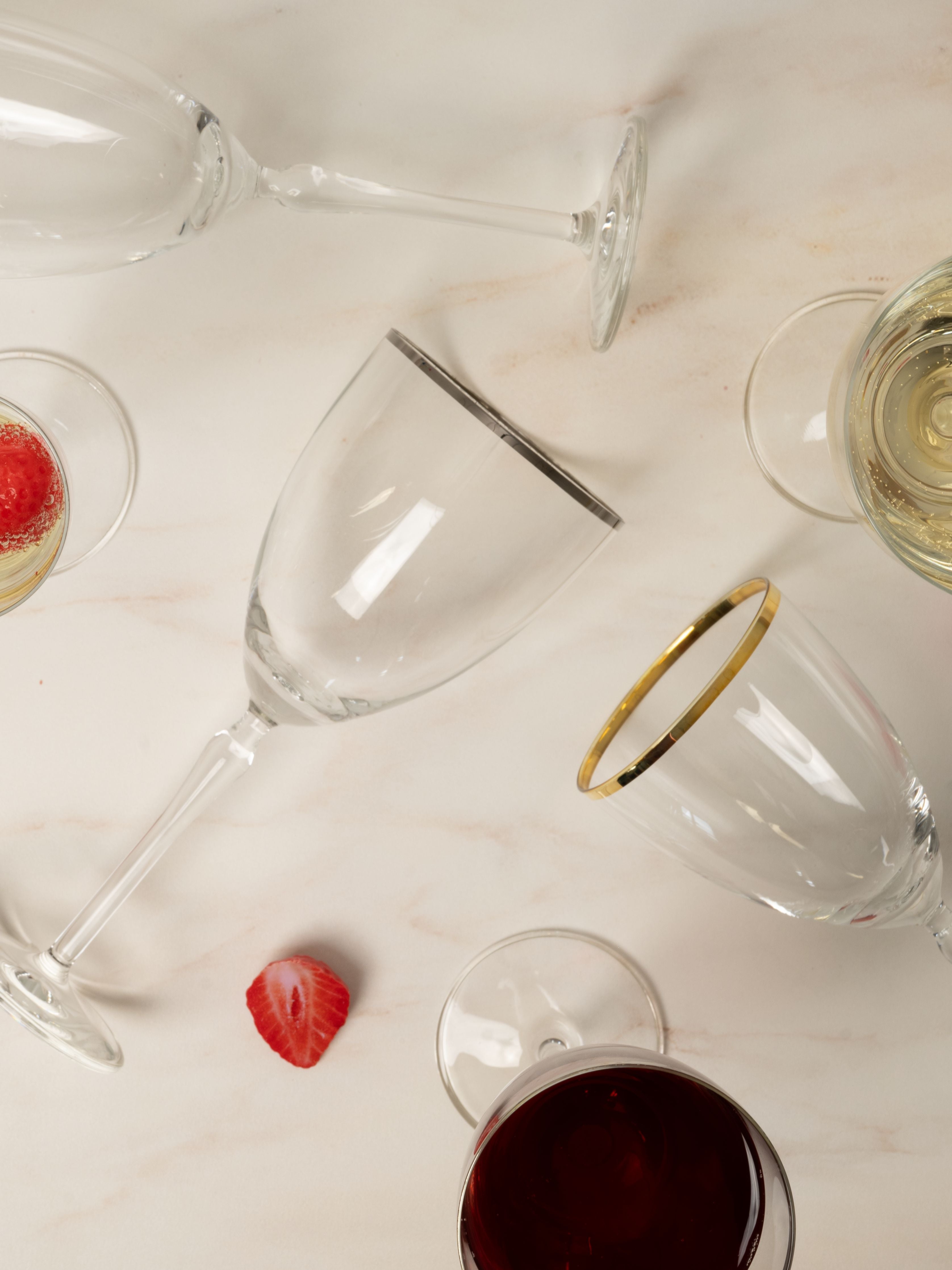 The Audrey glassware collection features a classic design and slender stems, adding refined elegance to any setting. Its clear, silver or gold finish makes it a versatile choice for both everyday use and formal celebrations.