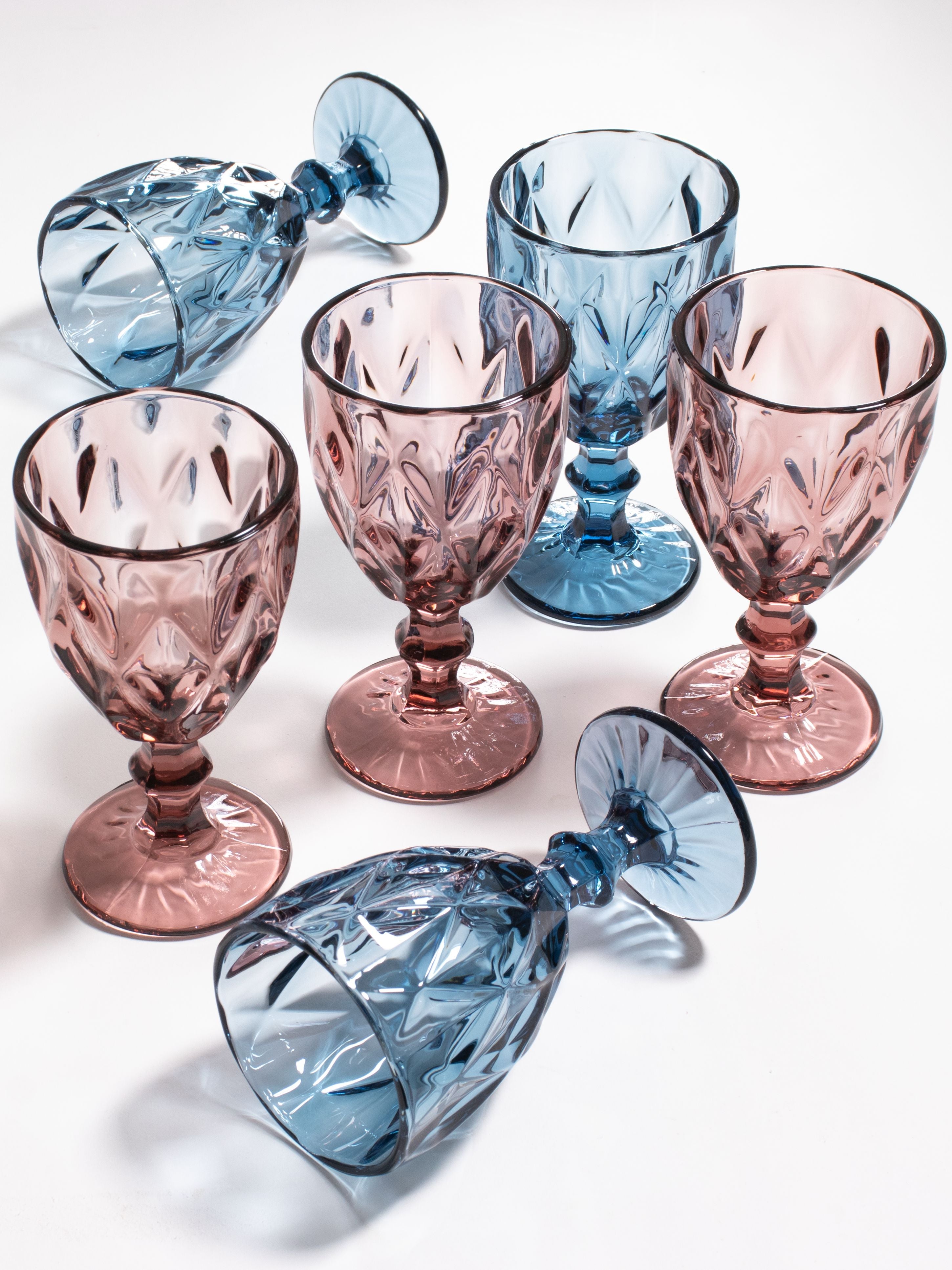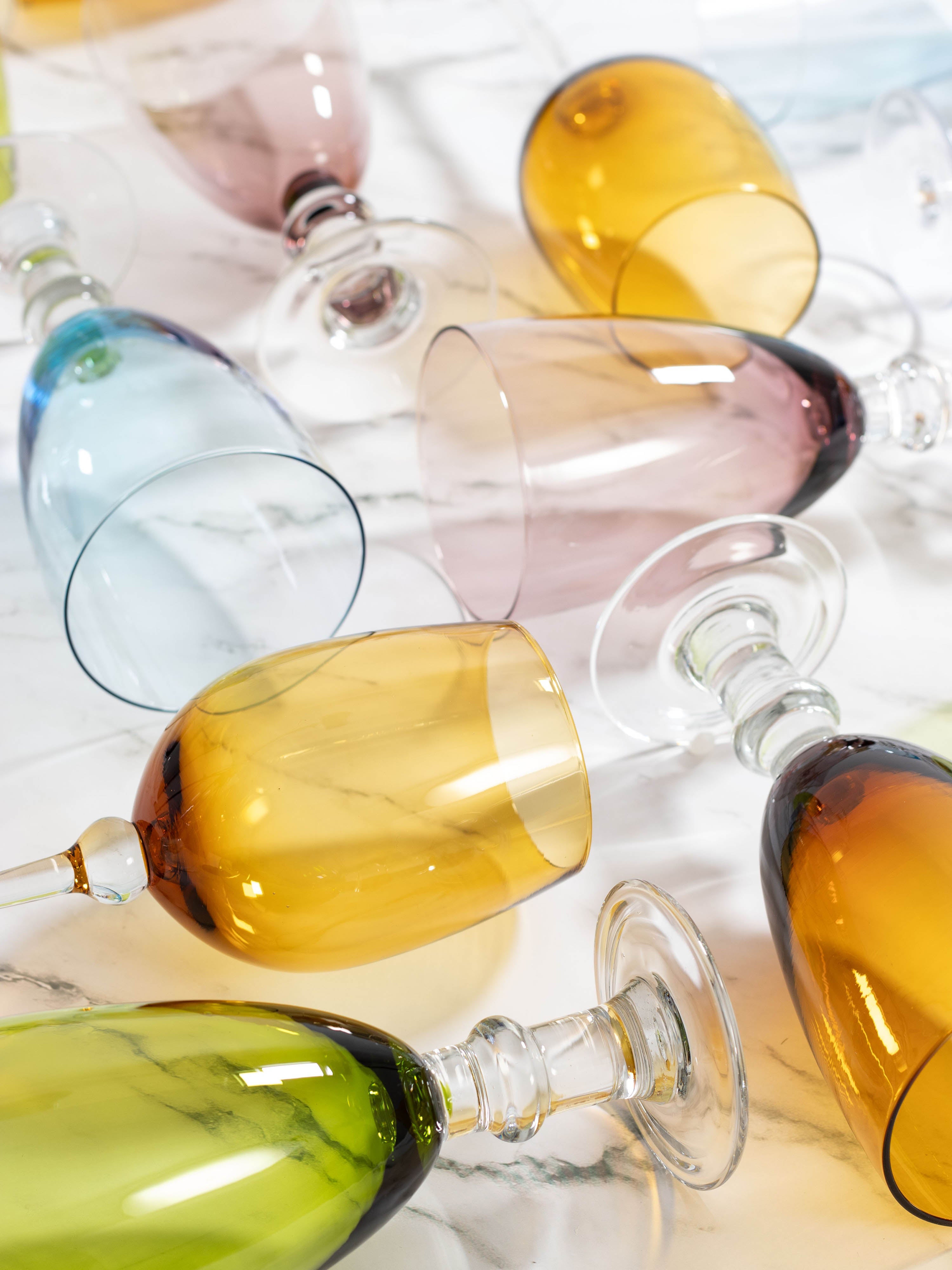 Enhance your event décor with a sophisticated touch of color using our vintage-inspired tinted goblet collection. Dress either up or down to add a little joie de vivre to your occasion. Fun and vintage glassware adds the pop of color your tabletop needs.