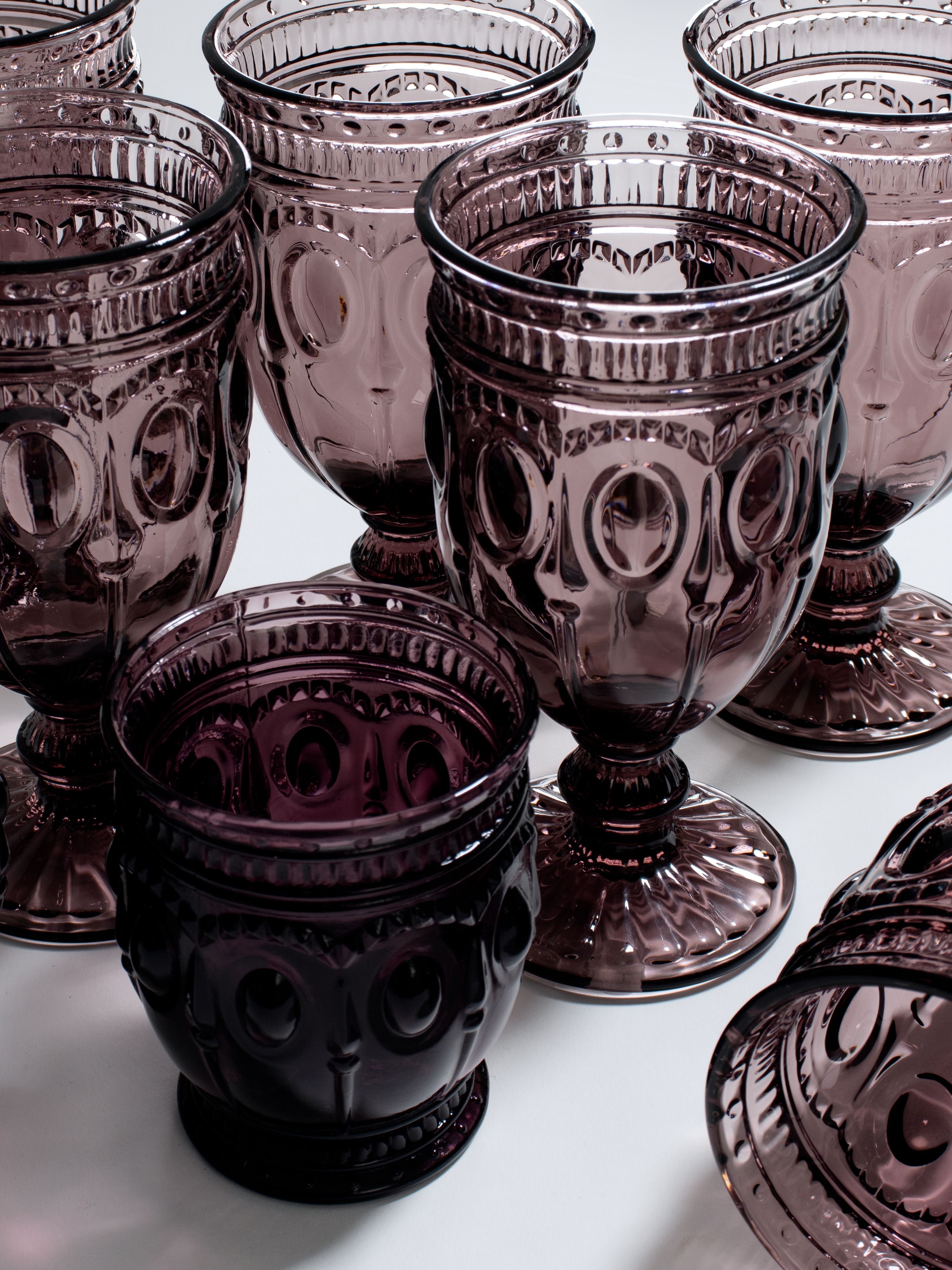 Add a touch of refined elegance to your event with our Jewel glassware. With its rich, deep purple hue, this glassware rental for events exudes sophistication and charm. Perfect for weddings, upscale dinners, corporate events, and stylish parties.
